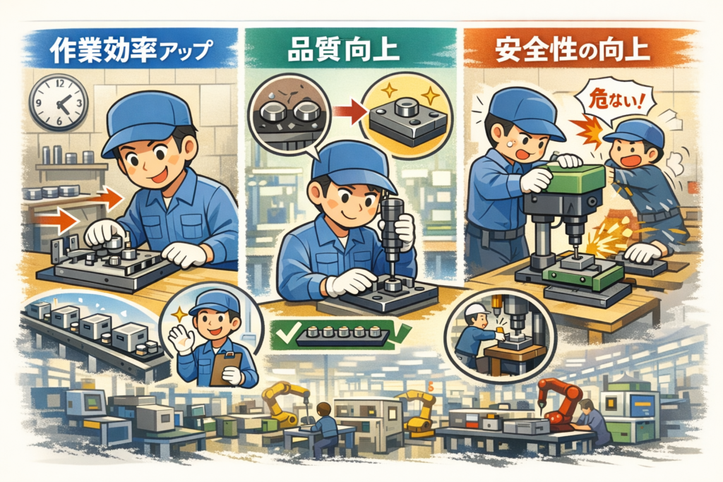 作業効率の向上、5Sの推進、安全性アップなど、現場改善に直結するアイテムを1個から作ります!